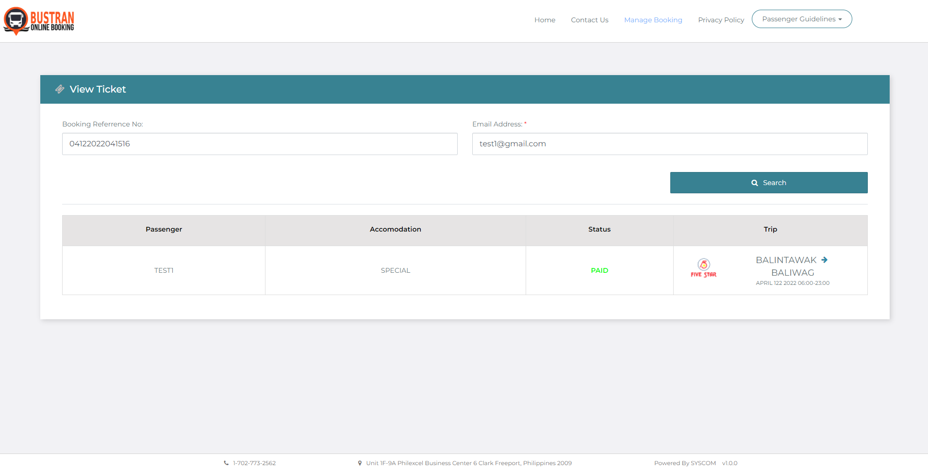 2. On the Manage Booking dashboard, enter your booking details such as Booking Reference Number, Email Address, and/or Ticket Number/Control Number. Then click Search.